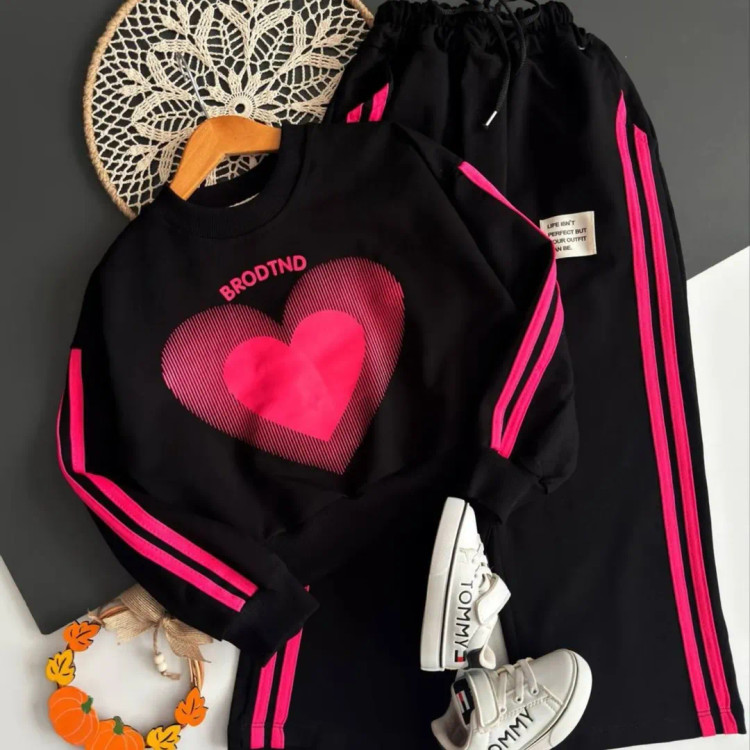 ست کراپ و شلوار بچگانه مدل قلب با ضمانت چاپ