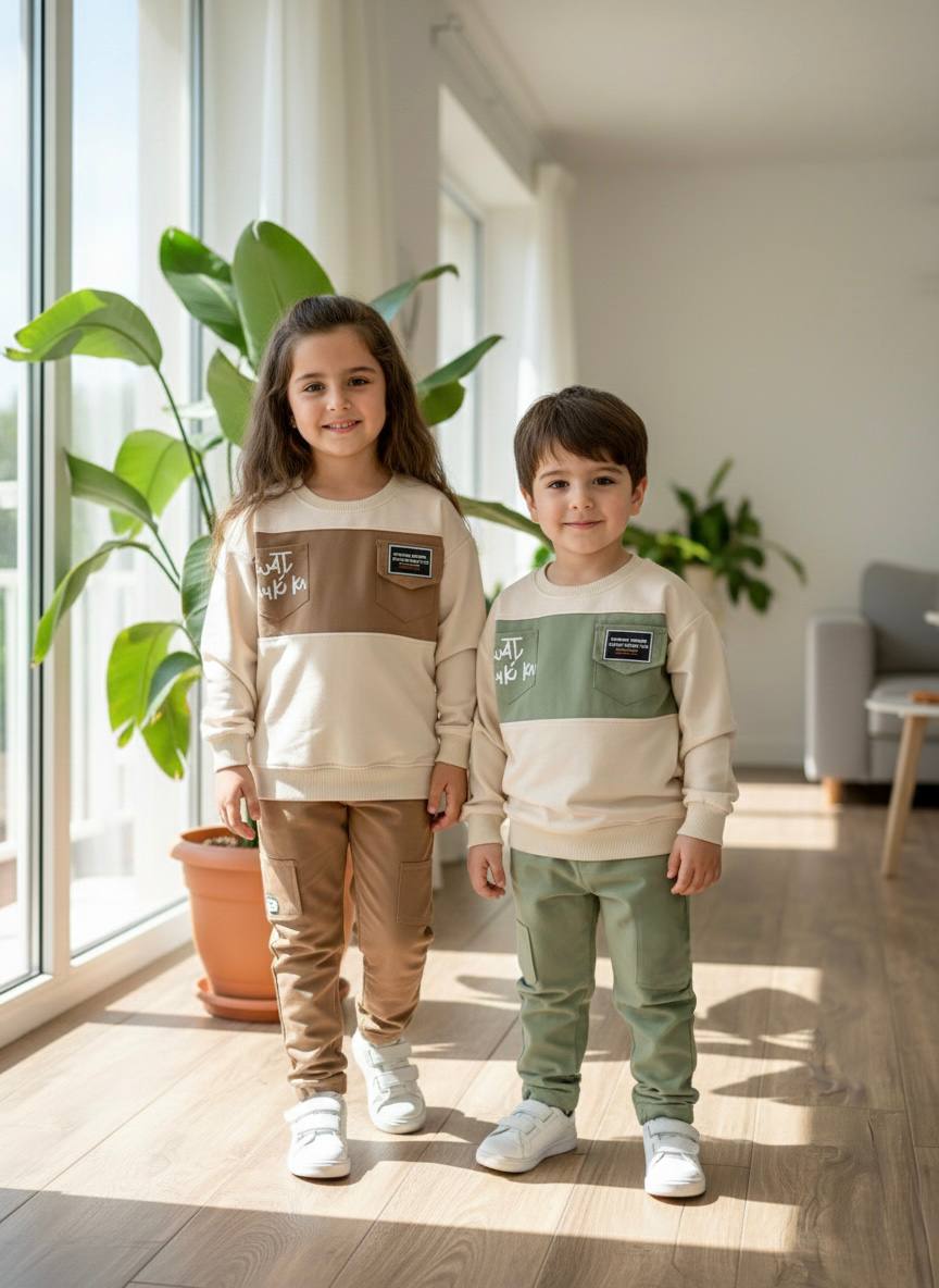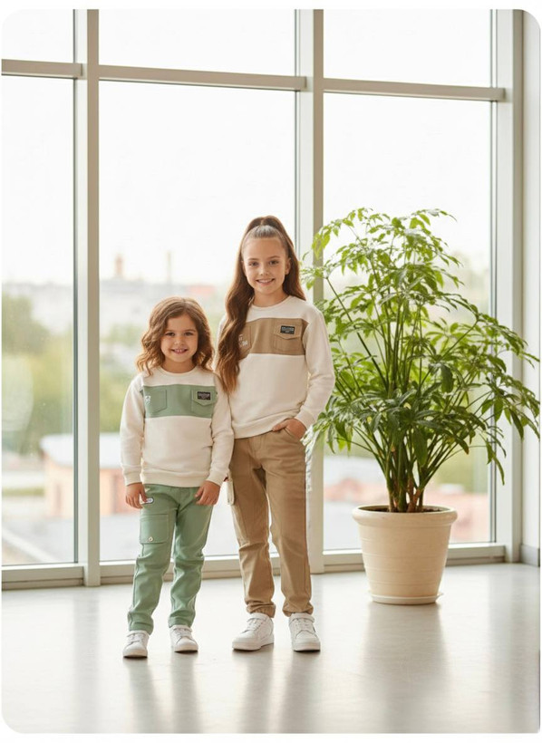 ست بلوزدورس و شلوار کتان بیرونی اسپورت جیب دار.