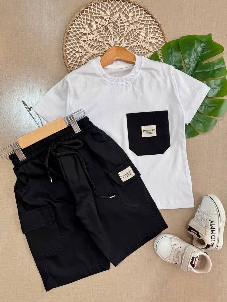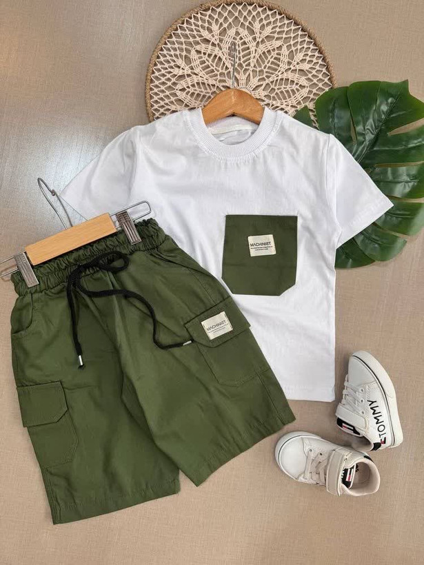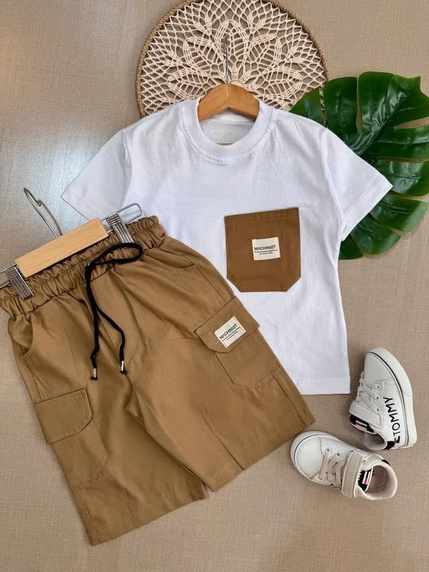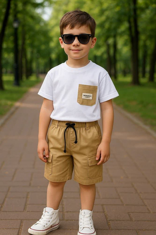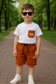 ست تیشرت جیبدار و شلوارک کتان جذاب اسپرت