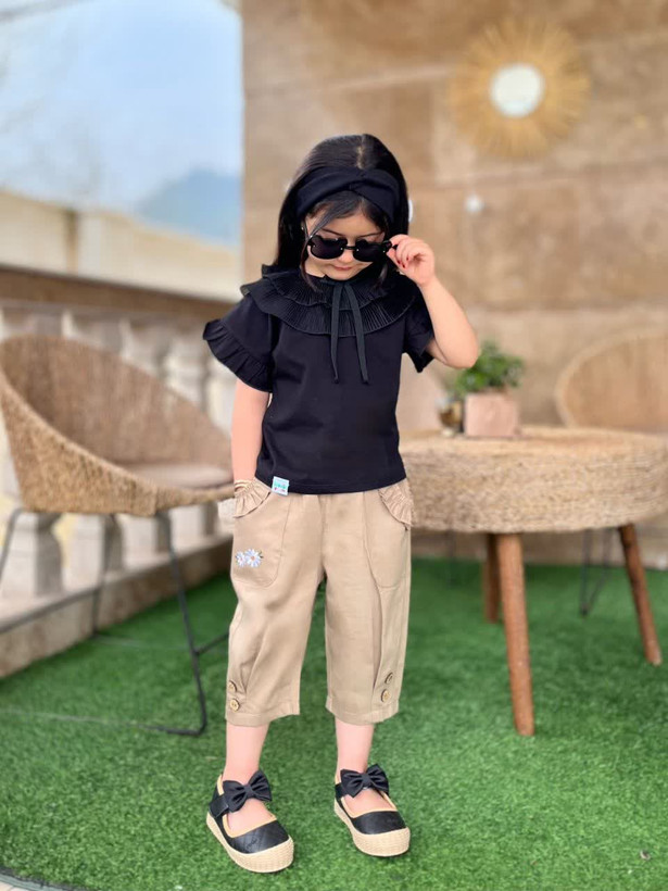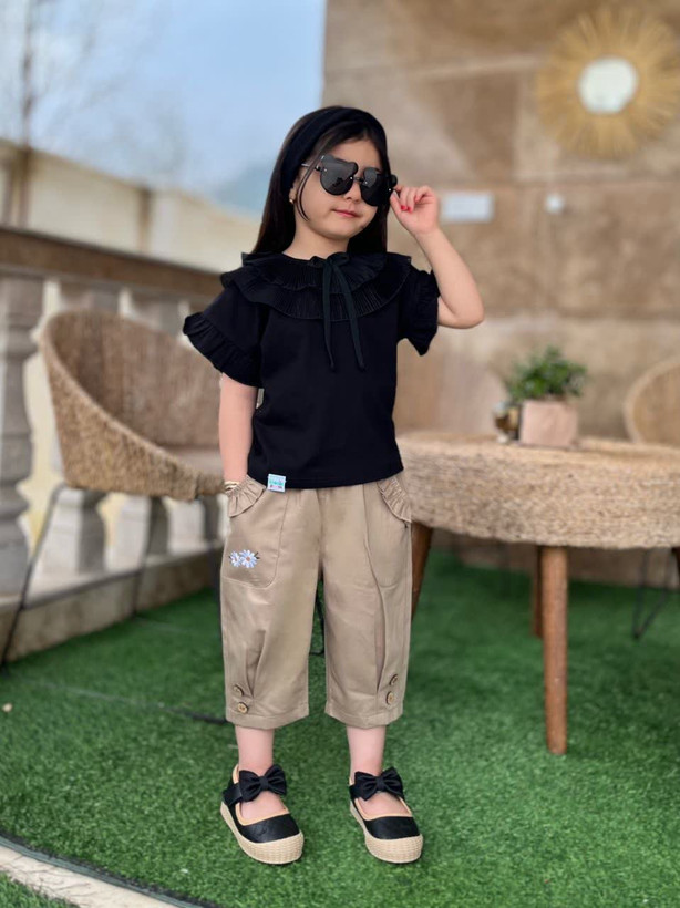 یقه تیشرت تور پلیسه بسیار با کیفیت کارشده است.