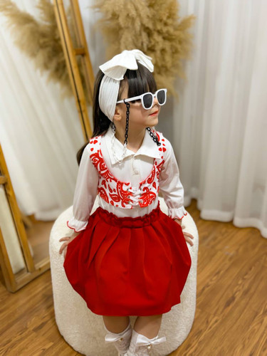 ناموجودپیراهن دخترونه دوتیکه کت و سارافون گلدار بهاری