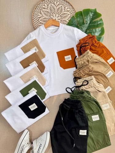 ست تیشرت جیبدار و شلوارک کتان جذاب اسپرت
