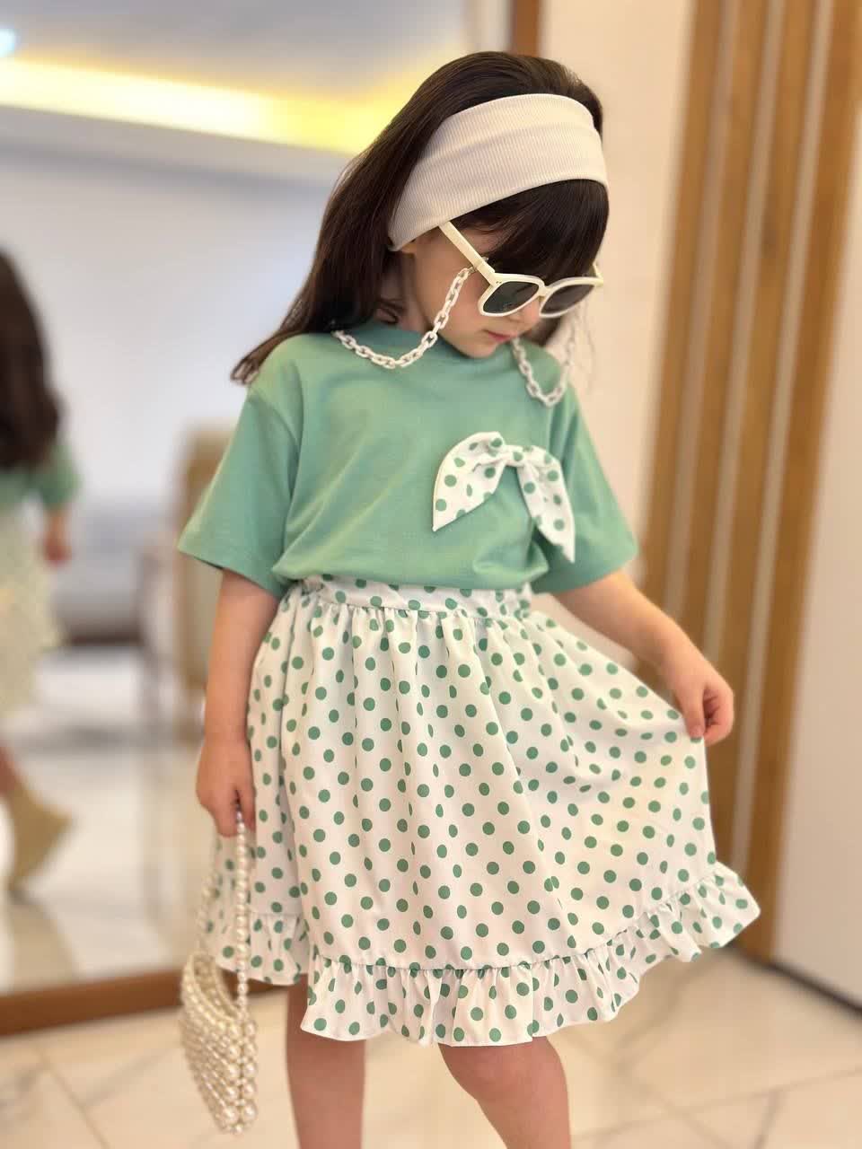 ناموجودست دخترونه بهاری شیک و جذاب تیشرت و دامن خالخالی